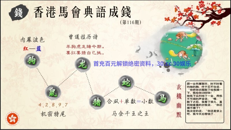 117期:推荐生活幽默/财神奇缘/两波中特/马会玄机/港彩九龙玄机